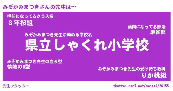 | 伝説のあだ名 | 『不死鳥のスナイパーみぞかみまつき』 |