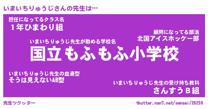 | 男性向けラノベタイトル風あだ名 | 『いまいちりゅうじの憂鬱』 |