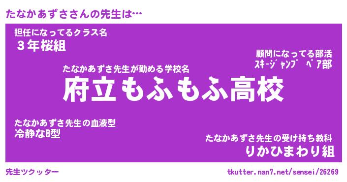 | ヘコむあだ名 | 『たなにゅー』『つくし』『たな太郎』 |