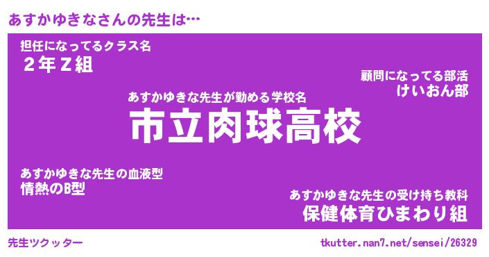 | ヘコむあだ名 | 『あすふぇ~』『なまこ酢』 |