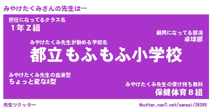 | ヒーロー風カッコイイあだ名 | 『スーパーミヤケタクミ』『炎刃騎士ミヤ』 |