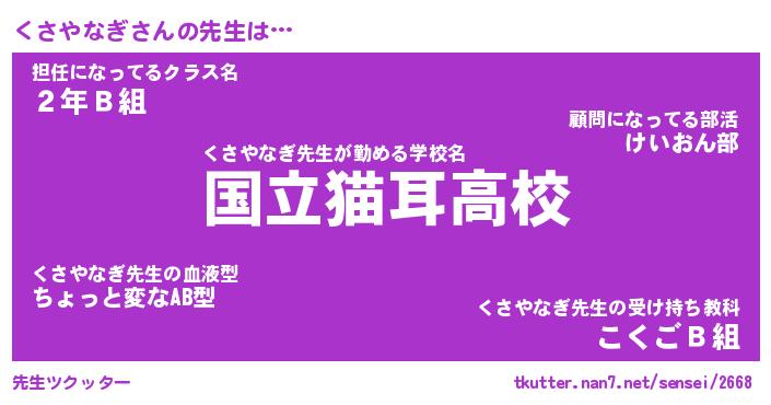 | ファンタジー風あだ名 | 『クサフェル』『エターナルクサヤナギー』 |
