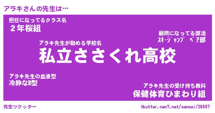 | ヒーロー風カッコイイあだ名 | 『スーパーアラキ』『ウルトラアラキマン』 |