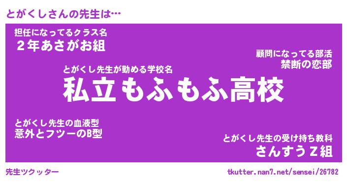 | ヘコむあだ名 | 『とがにゅー』『なまこ酢』『とがを』 |
