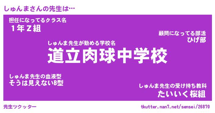 | ヒーロー風カッコイイあだ名 | 『スーパーシュンマ』『天弓騎士シュ』 |