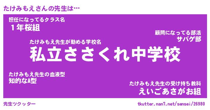 | ファンタジー風あだ名 | 『タケフェル』『エターナルタケミモエー』 |