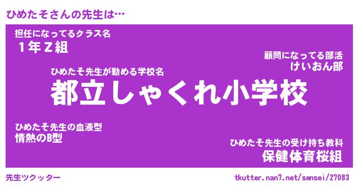 | ファンタジー風あだ名 | 『ヒメフェル』『エターナルヒメタソー』 |