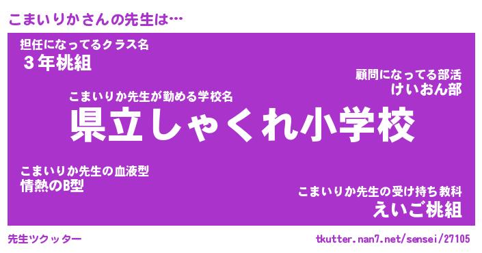 | 肩書あだ名 | 『こまいりか御曹司』『こまいりか担任』 |