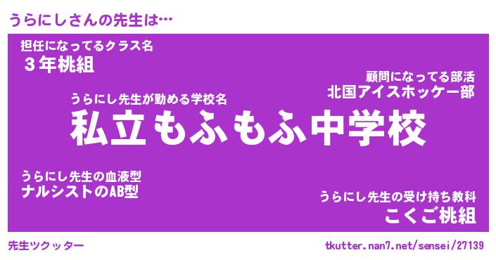 | ヘコむあだ名 | 『うらにゅー』『豆乳』『うらぷりん』 |