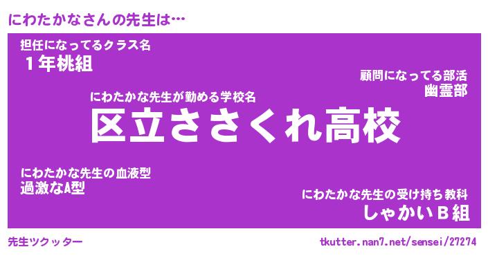 | ヒーロー風カッコイイあだ名 | 『スーパーニワタカナ』『炎刃騎士ニワ』 |