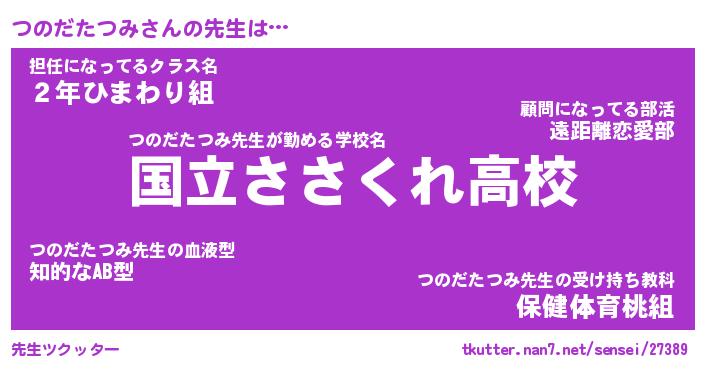 | 自動車の名前っぽいあだ名 | 『プリツノ』『ツスラー』『ツント』 |