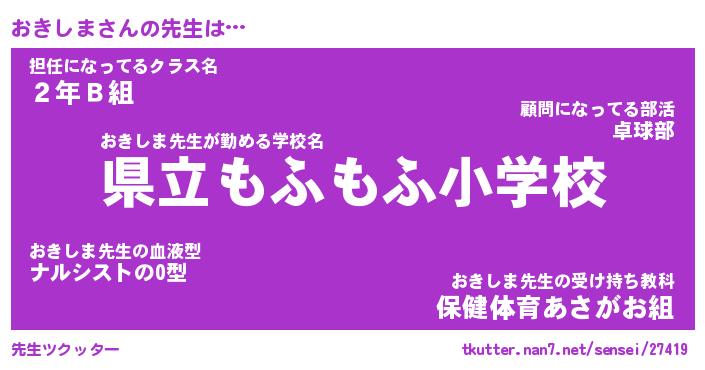 | 男性向けラノベタイトル風あだ名 | 『おきしまの憂鬱』 |