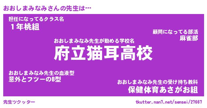 | ヘコむあだ名 | 『おおにー』『つくし』『おおっ子』 |