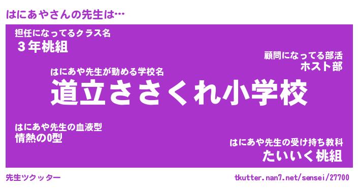 | 意味不明あだ名 | 『ペロリンはにあや』『永久保存はにあや』 |