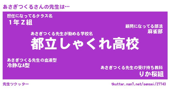 | 伝説のあだ名 | 『不死鳥のスナイパーあさぎつくる』 |
