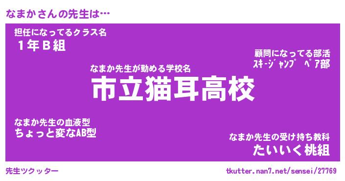 | ヘコむあだ名 | 『なまにー』『つくし』『なまっ子』 |