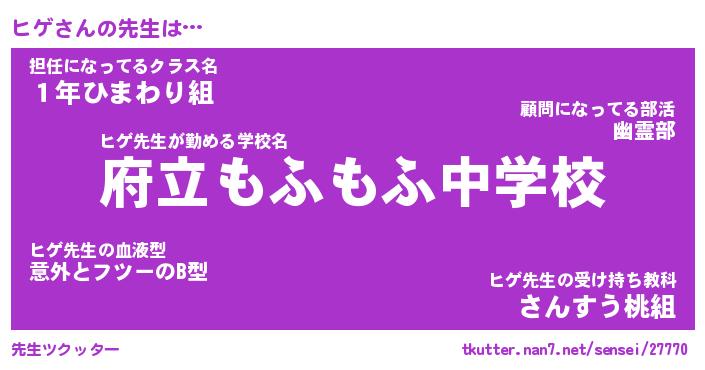 | ヘコむあだ名 | 『ヒゲにゅー』『つくし』『ヒゲ(笑)』 |