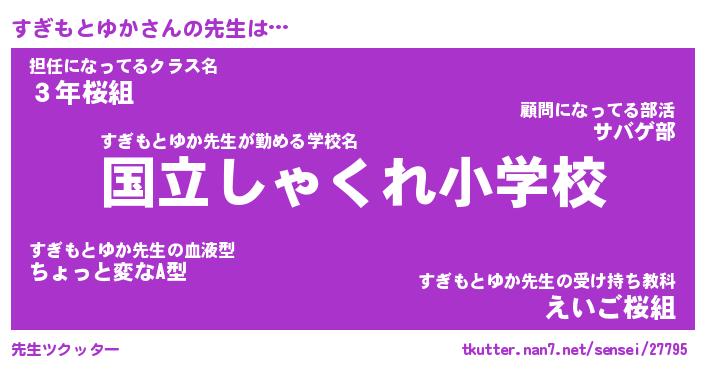 | 伝説のあだ名 | 『伝説のスナイパーすぎもとゆか』 |