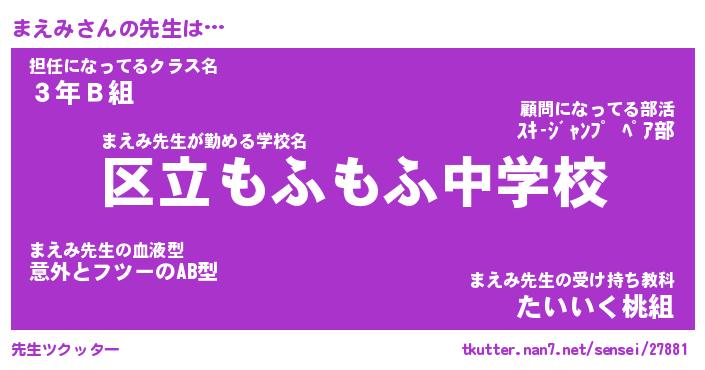 | 意味不明あだ名 | 『ペロリンまえみ』『まえみフォーエバー』 |