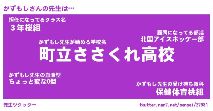 | 意味不明あだ名 | 『ペロリンかずもし』『永久保存かずもし』 |