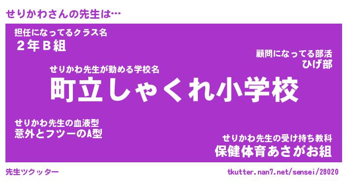 | 意味不明あだ名 | 『ペロリンせりかわ』『永久保存せりかわ』 |