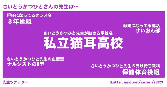 | 男性向けラノベタイトル風あだ名 | 『さいとうかつひとの憂鬱』 |
