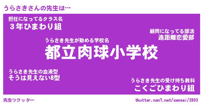 | 意味不明あだ名 | 『ペロリンうらさき』『永久保存うらさき』 |
