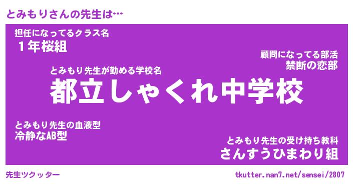 | ファンタジー風あだ名 | 『トミフェル』『エターナルトミモリー』 |