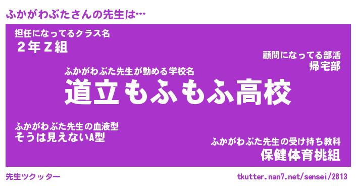 | 肩書あだ名 | 『ふかがわぶた店長』『ふかがわぶた教授』 |