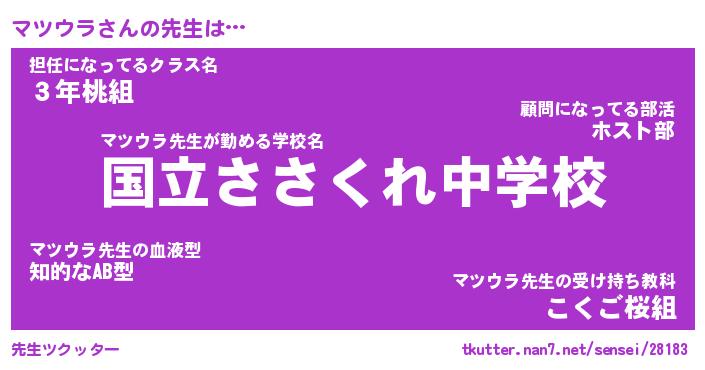| 意味不明あだ名 | 『ペロリンマツウラ』『永久保存マツウラ』 |