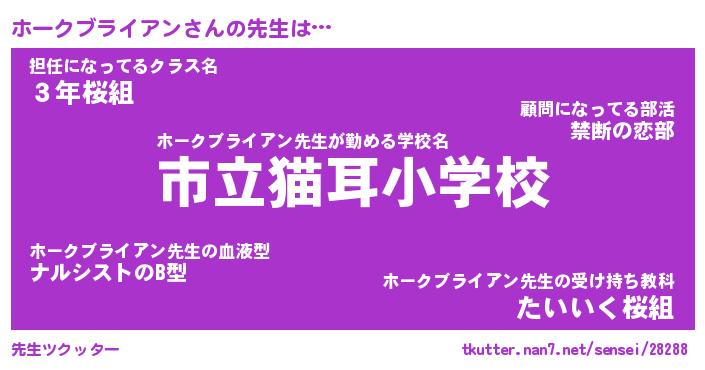 | 女子向けラノベタイトル風あだ名 | 『(仮)ホークブライアンのやんごとなき事情』 |