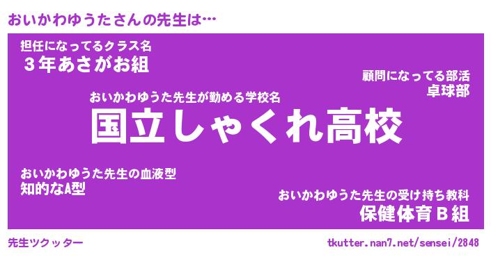 | 伝説のあだ名 | 『伝説のスナイパーおいかわゆうた』 |