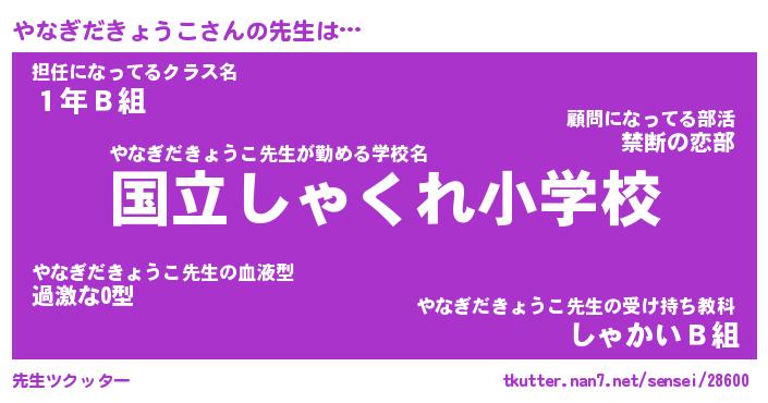 | 伝説のあだ名 | 『伝説のスナイパーやなぎだきょうこ』 |