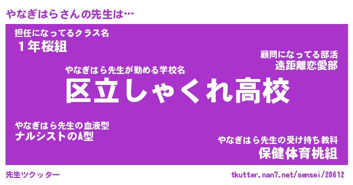 | 伝説のあだ名 | 『封印されしスナイパーやなぎはら』 |