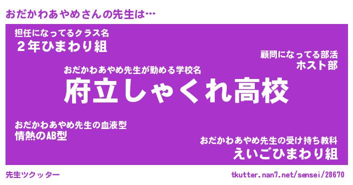 | 伝説のあだ名 | 『封印されしスナイパーおだかわあやめ』 |