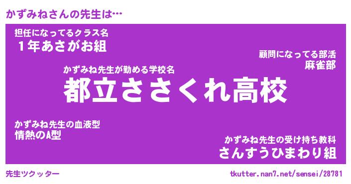 | ポケモン風あだ名 | 『カズチュウ』『カズミダネ』 |