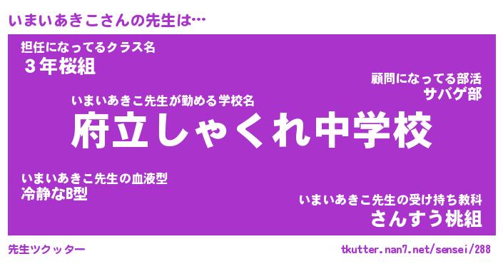 | ポケモン風あだ名 | 『イマチュウ』『イマイダネ』 |