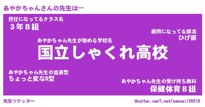 | 伝説のあだ名 | 『伝説のスナイパーあやかちゃん』 |