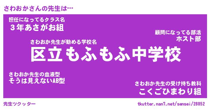| 意味不明あだ名 | 『ペロリンさわおか』『永久保存さわおか』 |