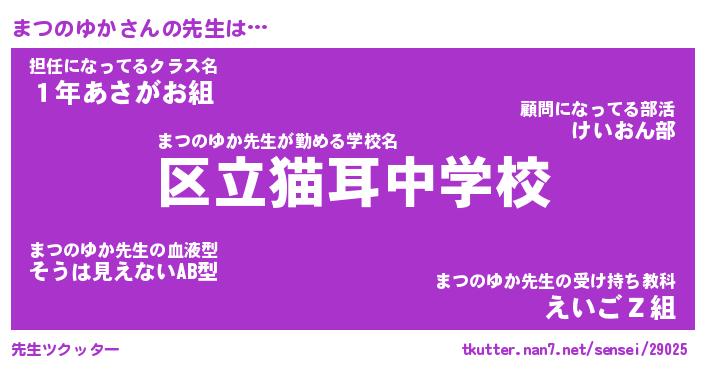 | 恥ずかしいあだ名 | 『プリティーまつのゆか』『まつっちょ』 |