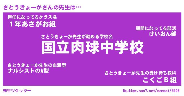 | 胡散臭い通販商品みたいなあだ名 | 『必ず成功するブレスレット…その名も「さとうきょーか」』 |