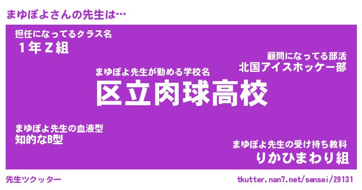 | ヒーロー風カッコイイあだ名 | 『スーパーマユポヨ』『暗黒騎士マユ』 |