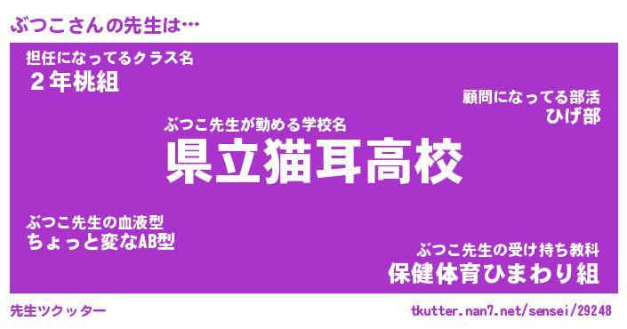 | ヘコむあだ名 | 『ぶつにー』『なまこ酢』『ぶつっ子』 |
