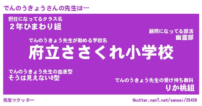 | ヘコむあだ名 | 『でんもー』『なまこ酢』『でんを』 |