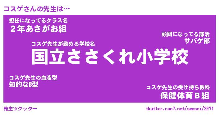 | ヘコむあだ名 | 『コスもー』『なまこ酢』『コスっぺ』 |