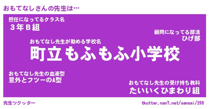 | ファンタジー風あだ名 | 『オモフェル』『エターナルオモテナシー』 |