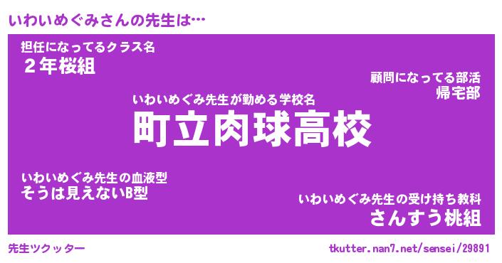 | 肩書あだ名 | 『いわいめぐみCEO』『いわいめぐみ副担任』 |