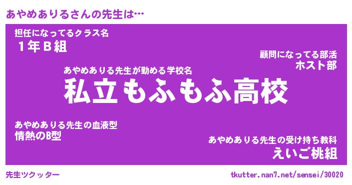 | 肩書あだ名 | 『あやめありる店長』『あやめありる担任』 |