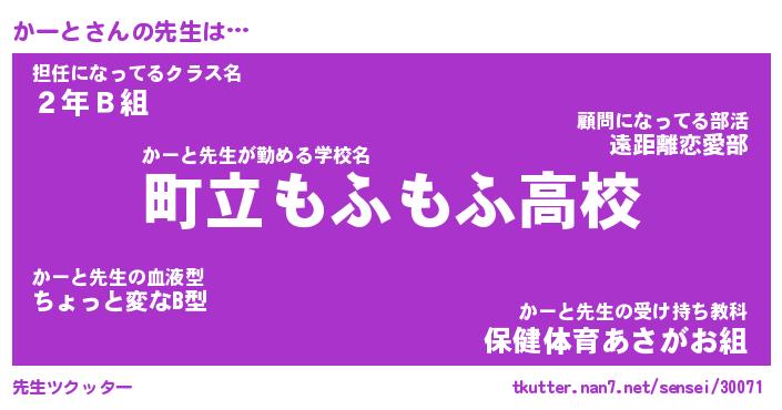 | ヘコむあだ名 | 『かーにゅー』『なまこ酢』『かーを』 |