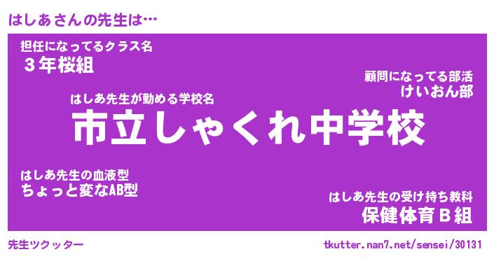 | 伝説のあだ名 | 『伝説のスナイパーはしあ』 |